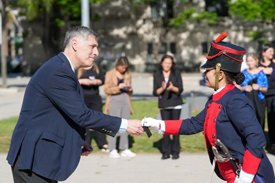Por su parte, Coudannes expresó que los Dragones simbolizan “el valor, la firmeza y el compromiso con el territorio, con la tierra que amamos, con la provincia invencible de Santa Fe. Son el orgullo para los santafesinos, son el legado del Brigadier. Queremos que nuestros hijos los sigan mirando con ese asombro de niño, con ese uniforme histórico que engalana cada uno de los actos”.