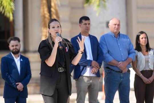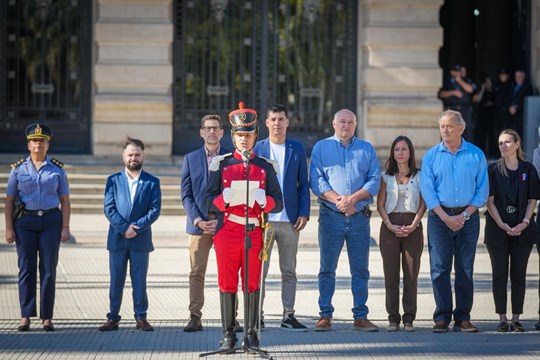 El acto se desarrolló este viernes a la mañana en Plaza 25 de Mayo, donde estuvieron presentes el ministro de Economía, Pablo Olivares; el intendente Juan Pablo Poletti; la secretaria de Coordinación Institucional del Ministerio de Justicia y Seguridad, Virginia Coudannes; el secretario de Gestión Cultural de la provincia, Sebastián Cáceres; el subjefe de la Policía provincial, Daniel Filchel, entre otras autoridades.