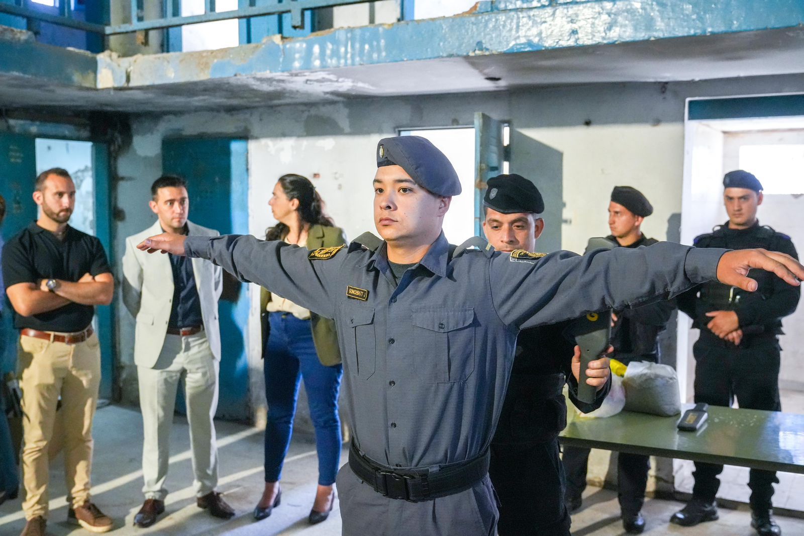 Luego, la secretaria de Asuntos Penales, Lucía Masneri, explicó que “estas paletas se van a utilizar principalmente en el grupo centralizado de requisas, es decir, para permitir el mayor límite de seguridad que tenemos, que es el control permanente de los pabellones, de los internos, y de las personas que ingresan y que siempre están intentando violentar las barreras de seguridad que tenemos en las unidades: esconden cosas, esconden celulares, balas y demás, con lo cual las paletas se transforman en