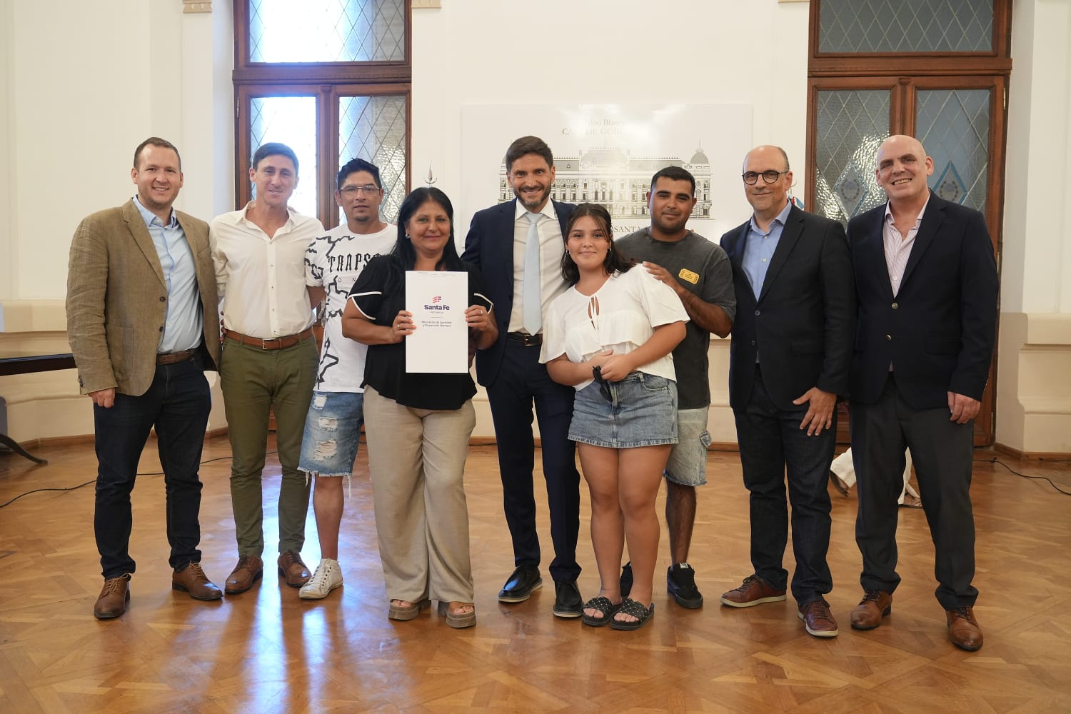 El gobernador de la provincia de Santa Fe, Maximiliano Pullaro, entregó este miércoles 19 escrituras a vecinos y vecinas de la ciudad capital, en un acto realizado en el Salón Blanco de Casa de Gobierno. Los títulos de propiedad fueron gestionados a través de la Dirección de Regularización Dominial del Ministerio de Igualdad y Desarrollo Humano, en el marco de las políticas provinciales de acceso a la vivienda y seguridad jurídica.