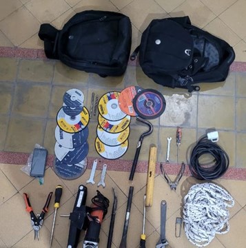 Tras ser interceptado, se hallaron en su poder mochilas que contenían elementos compatibles con intentos de ingreso forzado, como herramientas y otros objetos. En el lugar se verificaron daños en una reja de protección y en el sistema de cierre del acceso principal de la escribanía.